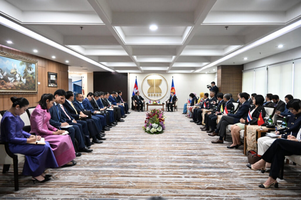 Secretary-General of ASEAN, Dr. Kao Kim Hourn, today together with the Committee of the Permanent Representatives to ASEAN (CPR) and the Ambassador of Timor-Leste to ASEAN, attended an interface with Samdech Akka Moha Sena Padei Techo Hun Sen, President of the Senate of the Kingdom of Cambodia, at the ASEAN Headquarters/ASEAN Secretariat. The Interface reaffirmed Cambodia’s vital role in ASEAN’s Community-building and regional integration efforts. Secretary-General Dr. Kao extended his heartfelt congratulations to Samdech Techo Hun Sen, the Royal Government, and the people of the Kingdom of Cambodia on the commemoration of the 26th anniversary of Cambodia’s membership in ASEAN, underscoring Cambodia’s enduring contributions to the advancement of ASEAN’s shared goals of peace, prosperity and unity.