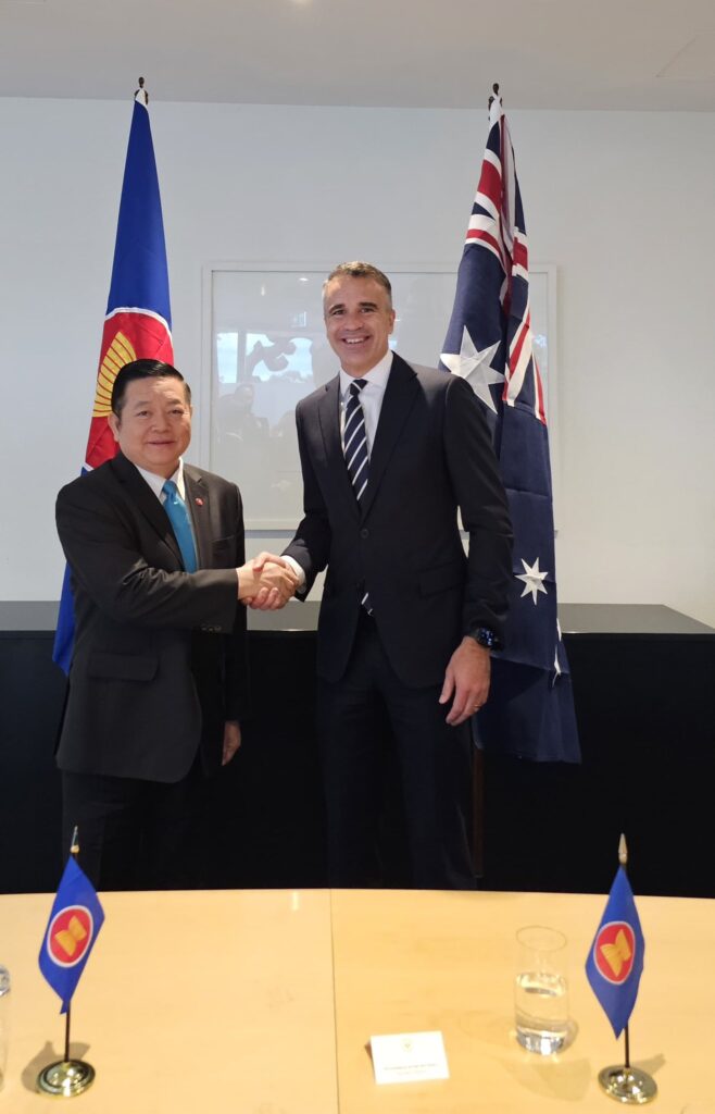 Secretary-General of ASEAN, H.E. Dr. Kao Kim Hourn, this morning met with the Premier of South Australia, Honourable Peter Malinauskas MP, during his visit to Adelaide, Australia, for the Australia-ASEAN Business Forum 2025.