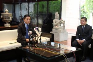 Phnom Penh, 9 August 2017: Dr. Kao Kim Hourn, Minister Delegate Attached to Samdech Techo Hun Sen, Prime Minister of the Kingdom of Cambodia, gave a press briefing on the key outcomes of Samdech Techo PM’s official working visit to Japan, on 6-9 August 2017 that includes royal audience with Crown Prince Naruhito, bilateral meetings with H.E Shinzō Abe, Prime Minister of Japan, Chairman of Denso Cambodia, Co., Ltd., Chairman of Toyota Tsusho Co., Ltd., Chairman of Mizuho Bank Ltd., Chairman of Minebea Cambodia Co., Ltd., and Chairman of the Japan-Mekong Parliamentary Friendship Association. Samdech Techo PM also attended Seminar on Investment organized by Japan-Cambodia Association. Samdech Techo PM always place great emphasis on human resource development and seeks opportunity to meet with Cambodian students who are pursuing their studies abroad. Obviously, during his trip to Japan this time, Samdech Techo PM met with some 250 Cambodian students continuing their studies in Japan and encouraged them to make their best efforts and bring back to serve the country. The visit of Samdech Techo PM to Japan this time truly reflected strong bonds of friendship between the two countries and contributed to the strengthening and expansion of the bilateral cooperation and relations, which brought greater benefits to the peoples of the two countries.