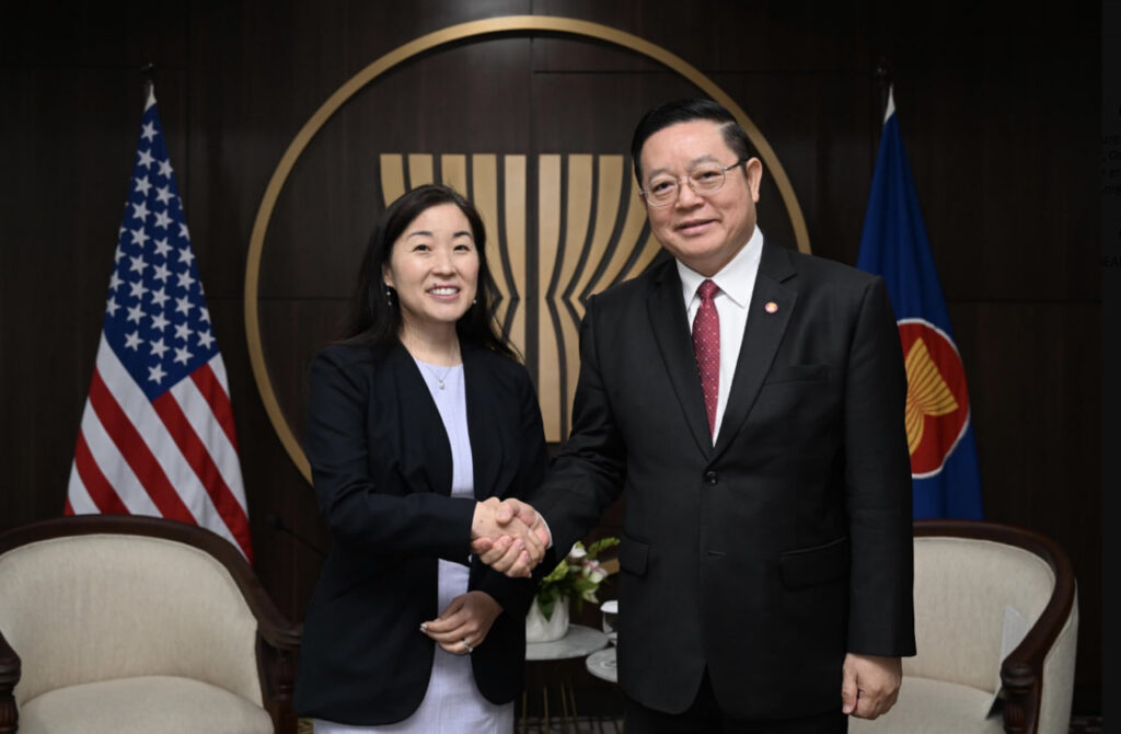Secretary-General of ASEAN, Dr. Kao Kim Hourn, today met with Chargé d’Affaires (CDA) ad interim of the United States Mission to ASEAN, Joy Sakurai, at the ASEAN Headquarters/ASEAN Secretariat. Both sides exchanged views on regional and international issues of mutual interest and discussed preparations for the upcoming 13th ASEAN-United States Summit, scheduled to be held later this month, in Kuala Lumpur, Malaysia.