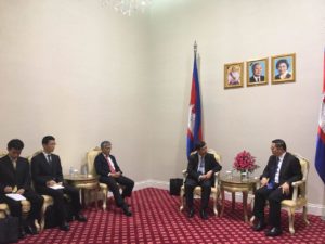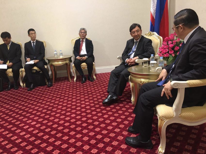 Peace Palace, 19 July 2017: Dr. Kao Kim Hourn, Minister Delegate Attached to Samdech Techo Hun Sen, Prime Minister of the Kingdom of Cambodia, met with Mr. Toshiro IIJIMA, Deputy Director-General of Foreign Policy Bureau, Ministry of Foreign Affairs of Japan, to discuss Cambodia-Japan relations and exchange of views on regional issues.
