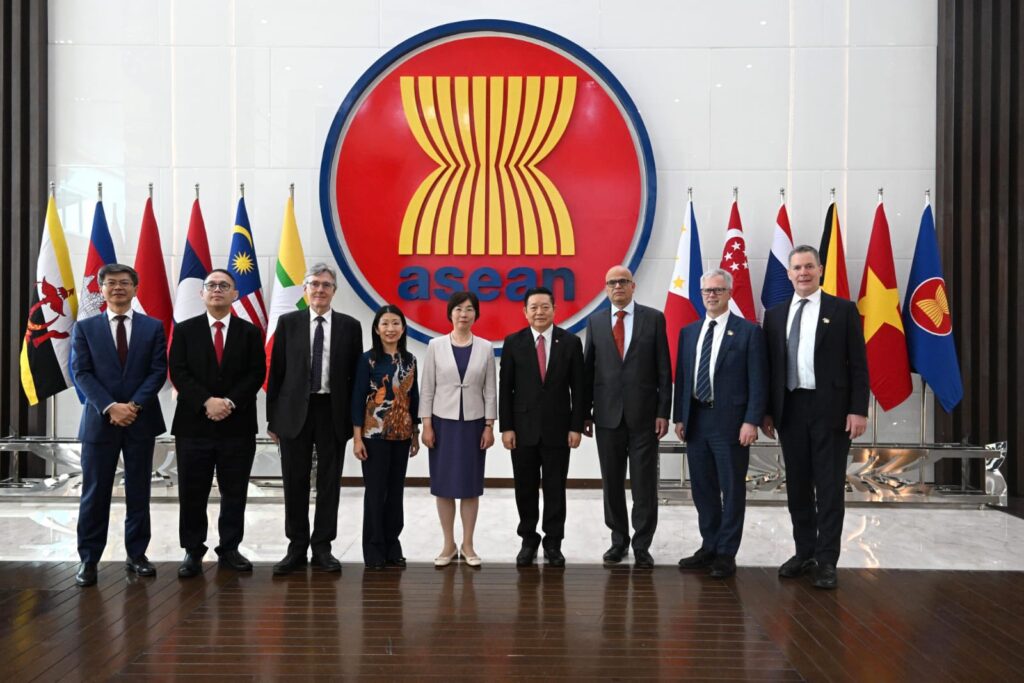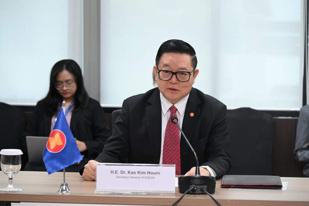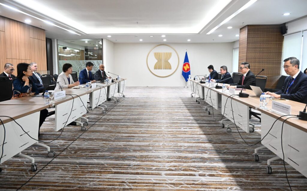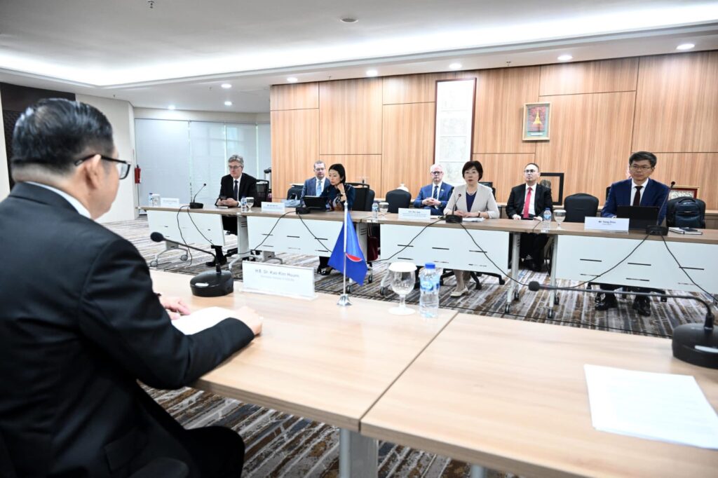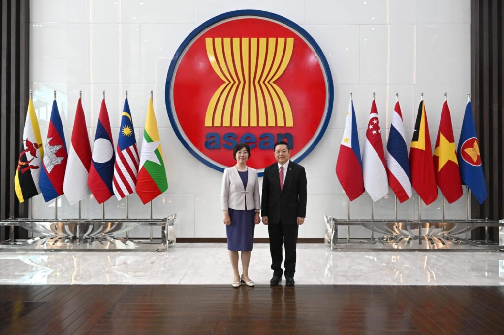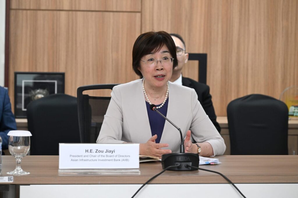 Secretary-General of ASEAN, Dr. Kao Kim Hourn, today received the new President and Chair of the Board of Directors of Asian Infrastructure Investment Bank (AIIB), Zou Jiayi, at the ASEAN Headquarters/ASEAN Secretariat. Both sides exchanged views on strengthening cooperation supporting priorities on connectivity and sustainable infrastructure, particularly in transport, energy and digital infrastructure, as well as in infrastructure financing. SG Dr. Kao congratulated Madam Zou on her recent assumption of office and looked forward to further deepening ASEAN-AIIB partnership.