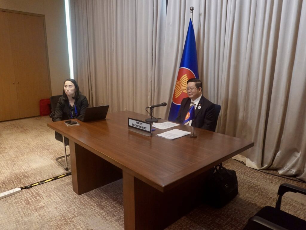 Secretary-General of ASEAN, Dr. Kao Kim Hourn, this afternoon participated in the Special ASEAN Foreign Ministers’ Meeting on the Situation in the Middle East, held via videoconference and chaired by the Secretary for Foreign Affairs of the Philippines, H.E. Theresa P. Lazaro.
