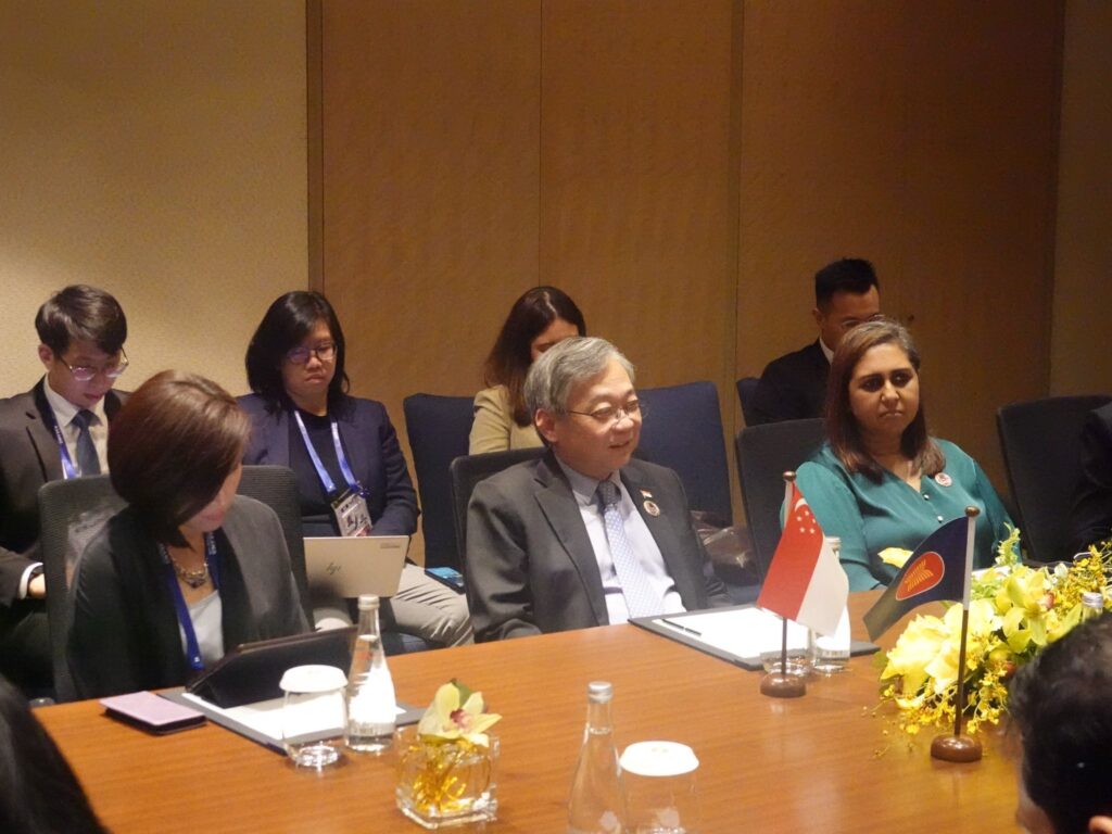 Secretary-General of ASEAN, Dr. Kao Kim Hourn, today met with the Deputy Prime Minister and Minister for Trade and Industry of Singapore, H.E. Gan Kim Yong, on the sidelines of the 32nd AEM Retreat, in Taguig, the Philippines.