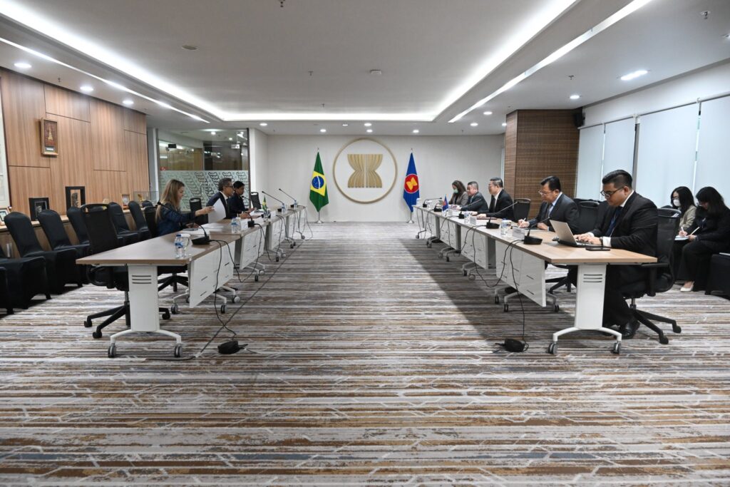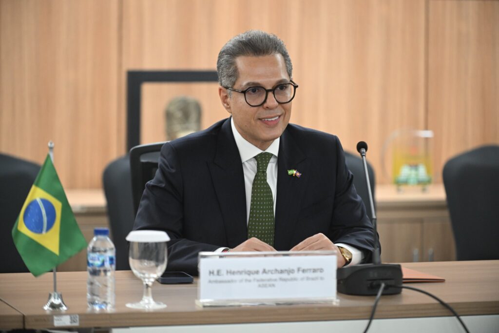 Secretary-General of ASEAN, Dr. Kao Kim Hourn, today met with Henrique Archanjo Ferraro, Ambassador of the Federative Republic of Brazil to ASEAN, at the ASEAN Headquarters/ASEAN Secretariat. Both sides exchanged views on strengthening ASEAN-Brazil relations and advancing cooperation in areas of mutual interest under the ASEAN-Brazil Sectoral Dialogue Partnership: Practical Cooperation Areas (2024–2028). Both sides also touched on preparations for the official visit of SG Dr. Kao to Brazil in the near future.