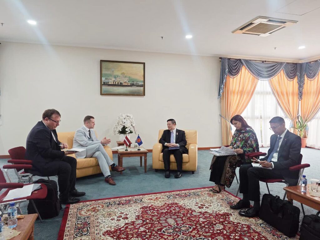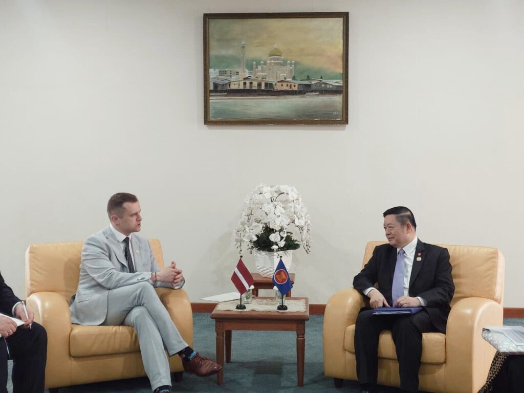 Secretary-General of ASEAN, Dr. Kao Kim Hourn, today held a bilateral meeting with Deputy Minister of Foreign Affairs of the Republic of Latvia, H.E. Artjoms Uršuļskis, on the margins of the 25th ASEAN-EU Ministerial Meeting (AEMM) in Bandar Seri Begawan, Brunei Darussalam. They exchanged views on ways to further strengthen relations between ASEAN and Latvia, including through the ASEAN-EU framework.