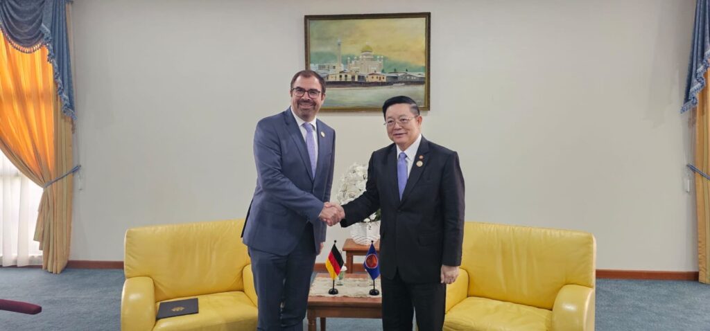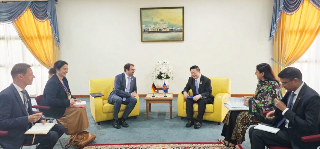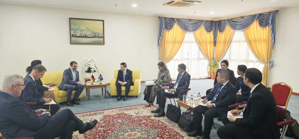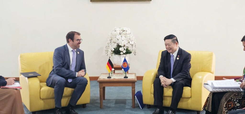 Secretary-General of ASEAN, Dr. Kao Kim Hourn, today held a bilateral meeting with the Minister of State at the Federal Foreign Office of the Federal Republic of Germany, H.E. Florian Hahn, on the sidelines of the 25th ASEAN-EU Ministerial Meeting (AEMM) in Bandar Seri Begawan, Brunei Darussalam. They exchanged views on ways to further strengthen the ASEAN-Germany Development Partnership, building on the momentum of the partnership as it marks its 10th anniversary this year.