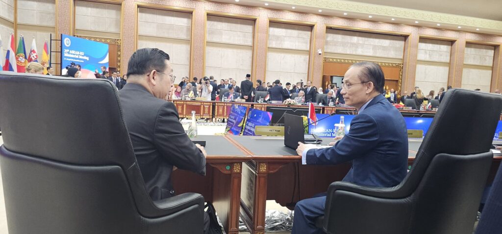Secretary-General of ASEAN, Dr. Kao Kim Hourn, today participated in the 25th ASEAN-EU Ministerial Meeting in Bandar Seri Begawan, Brunei Darussalam, where he briefed Ministers and representatives from ASEAN and EU Member States on the implementation of the Plan of Action to Implement the ASEAN-EU Strategic Partnership (2023–2027) as ASEAN and the EU look ahead to its 50th anniversary in 2027.