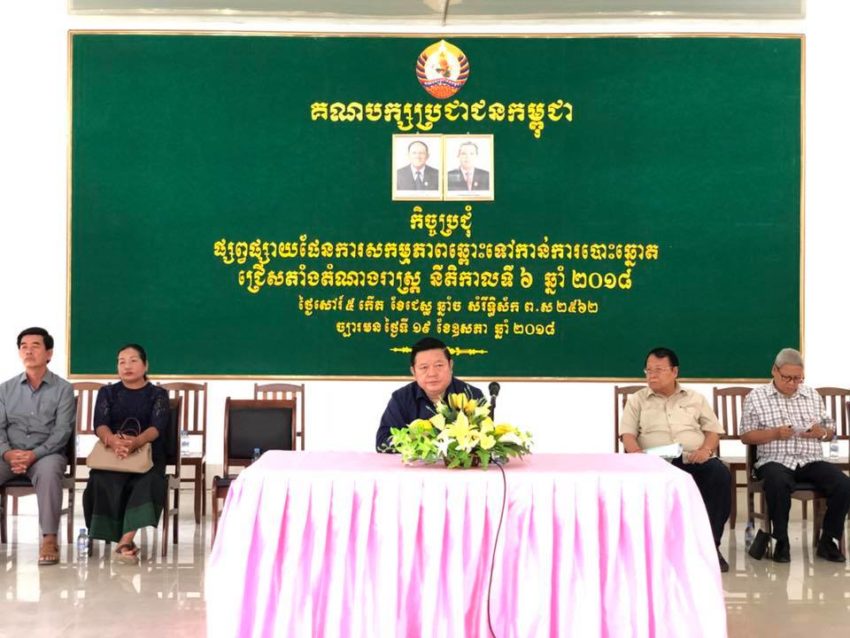 Krong Chbarmorn, Kampong Speu province, Cambodia, on Saturday, 19 May 2018: Presiding over a meeting for CPP Members from Krong Chbarmorn to disseminate the work plan for the general election in July 2018.
